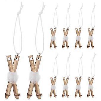 10pcs Christmas Sled Ornaments Ski Xmas Ornament Mini Sleigh Snow Ski Hanging Christmas Tree Ornament Mini Wooden Sleigh Ornaments Rustic Festive Pend