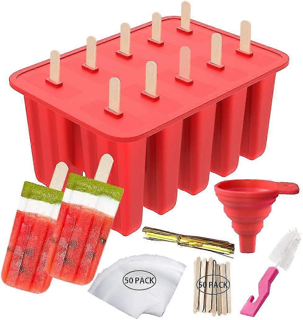 10 Reusable Silicone Popsicle Molds Diy Ice Cream Mold Bpa-free Frozen Popsicle Ice Cream Molds, 50 Wooden Sticks