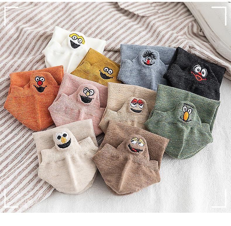 10 Pairs Embroidered Cartoon Socks Casual Funny Boat Socks Ankle Low Cut Socks