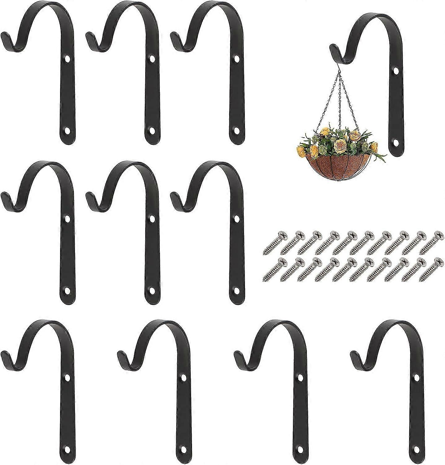 10 Pack Black Plant Hooks Wall Hanging Plant Hooks Basket Holder with Screws for Garden Lantern Gate Wind Chimes Bird Feeder (7*4cm)