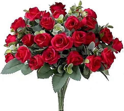 10 Heads Artificial Silk Rose Bouquet White Eucalyptus Leaves Fake Flowers for Wedding Table Party Vase Home Decor