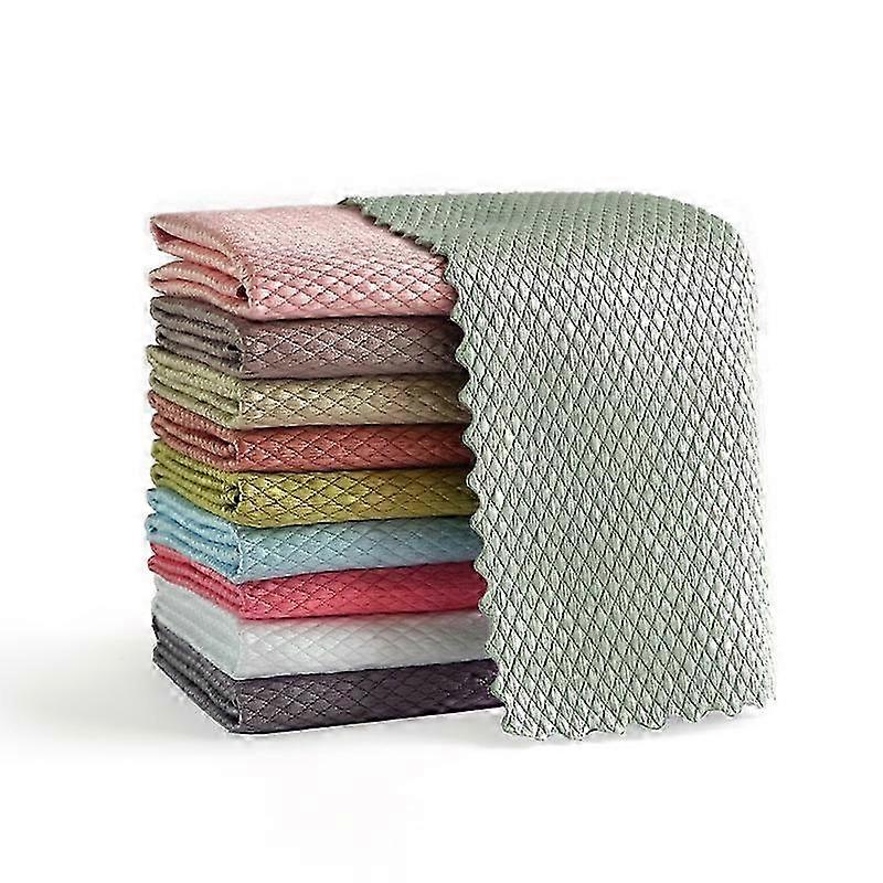 10 Pack Kitchen Anti-Grease Wiping Rags - Efficient Fish Scale Cleaning Cloths for Home Dishwashing & Household Cleaning Tasks