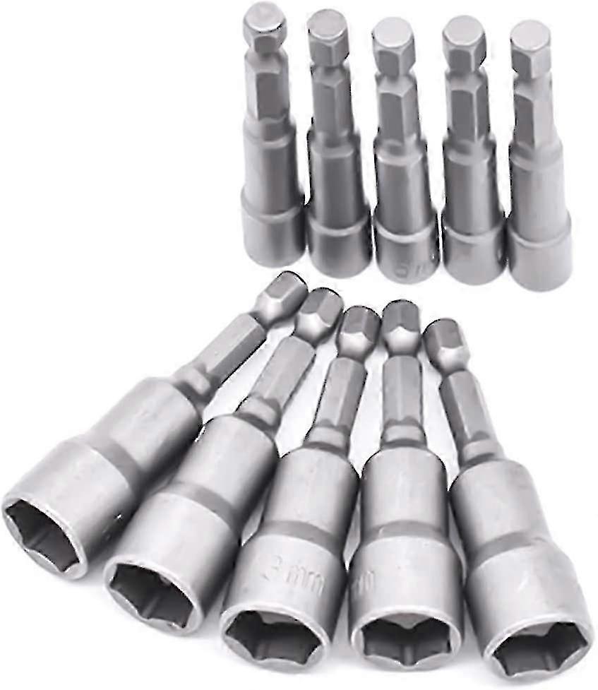 10 Pack Hex Socket Magnet, 6-19mm Socket Wrench, Screwdriver Wrench for Drill (Chrome Vanadium Steel)