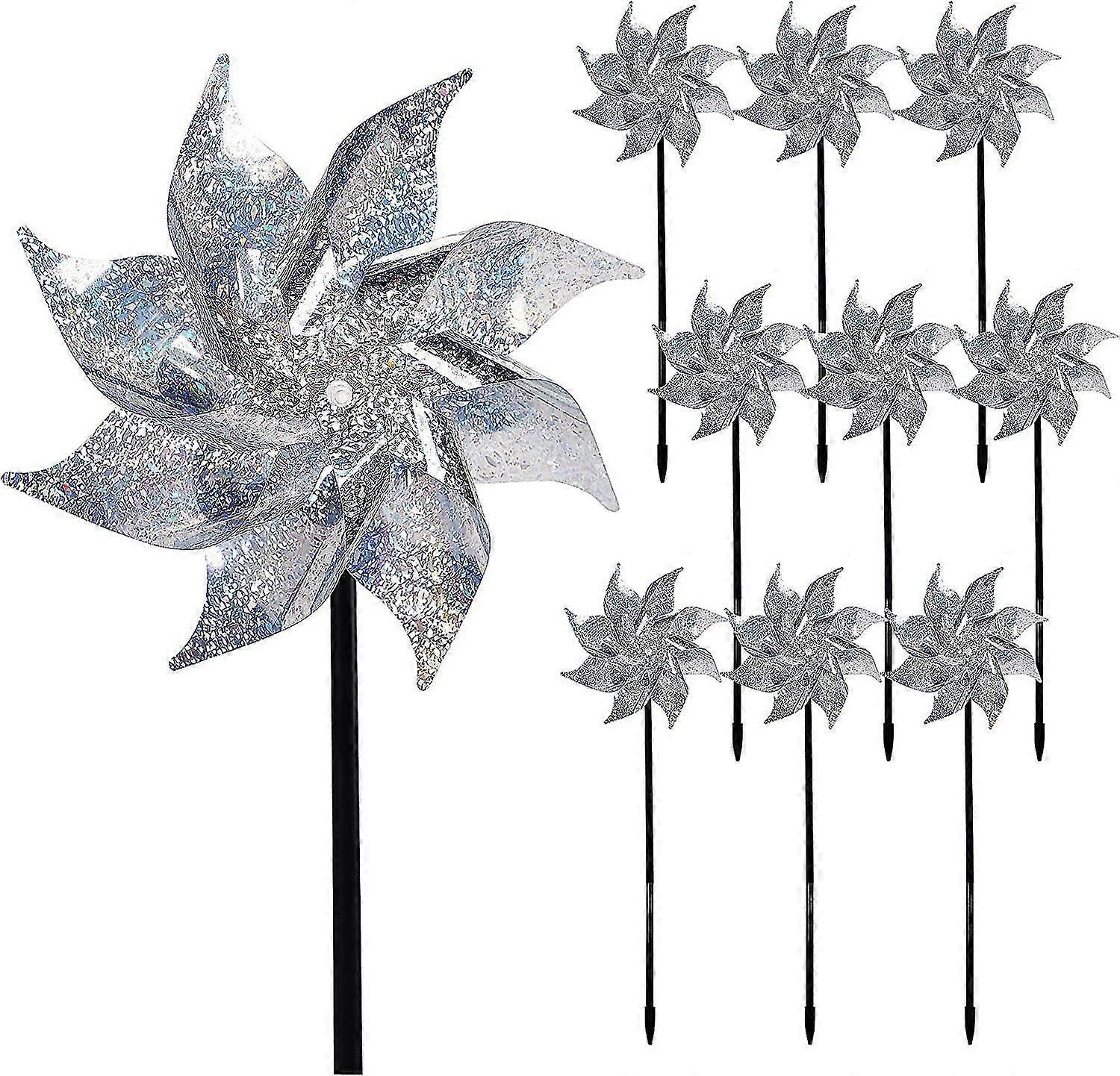 10 Pack Reflective Pinwheels With Stakes, Extra Sparkly Pin Wheel For Garden Decor, Bird Devices Deterrent To Scare Birds Away From Yard Patio Farm