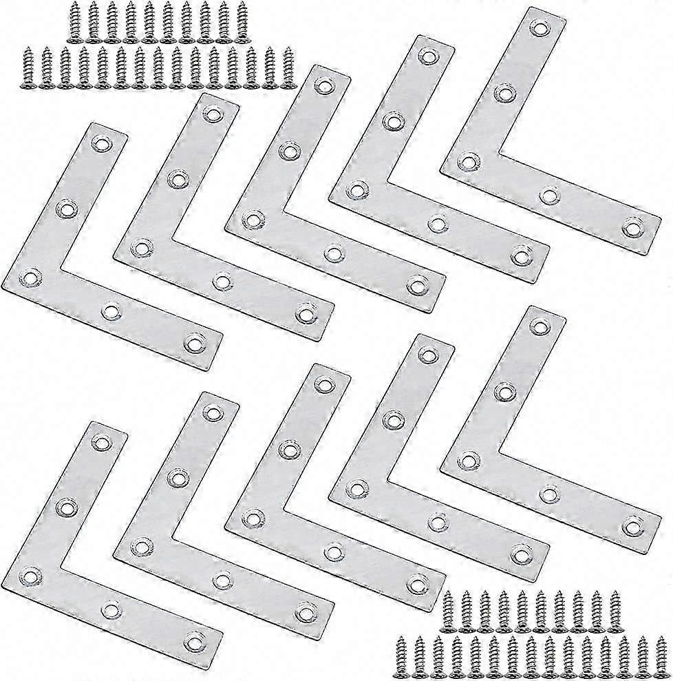 10 Pack Flat Angle Bracket 80 x 80 x 1.5mm Thicker Stainless Steel L Shaped Flat Angle Brackets for Fixing Furniture to Wood such as Table and Window