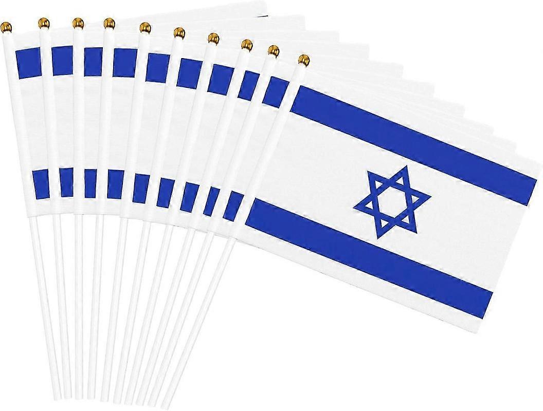 10 Pack Israel Mini Flag, Hand Held Small Miniature Israeli Flags 5.5x8.3 Inch with White Pole