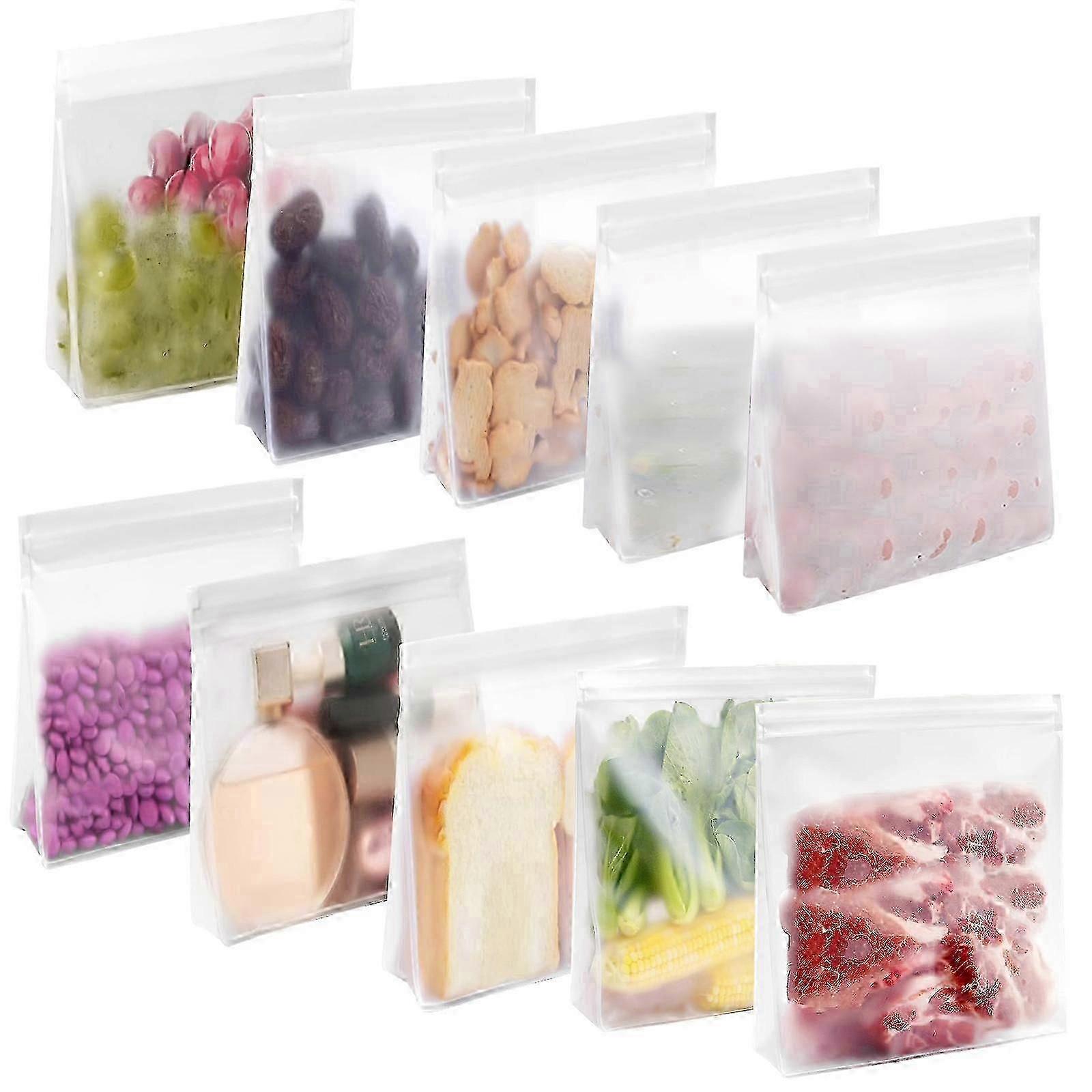 10 Food Storage Freezer Bags, Reusable Sandwich Bags, Food Storage Bags, Zip Bags with Expandable Bottom