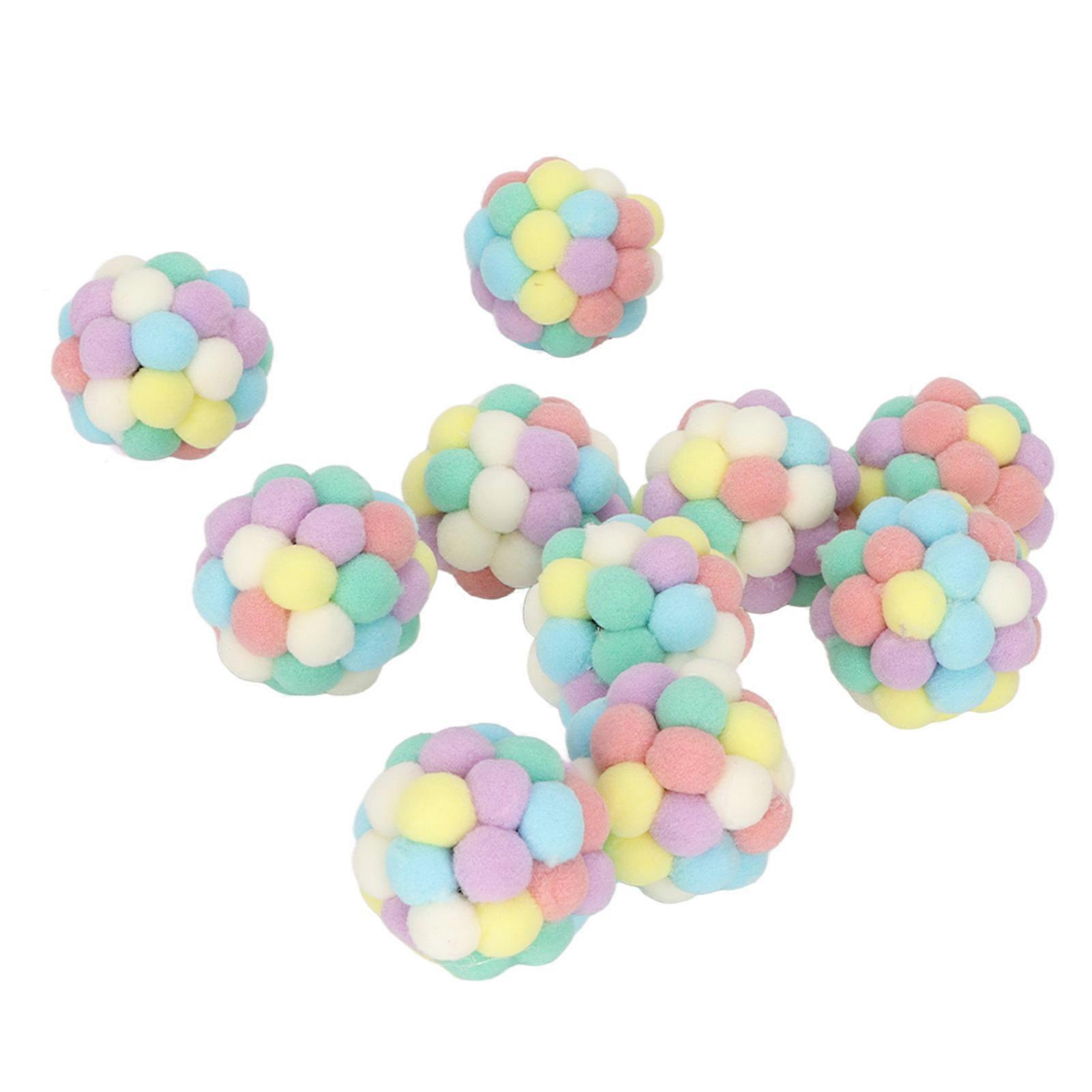 10pcs Plush Cat Toy Balls Colorful Soft Elastic Interactive Pet Kitten Chewing Toy for Indoor