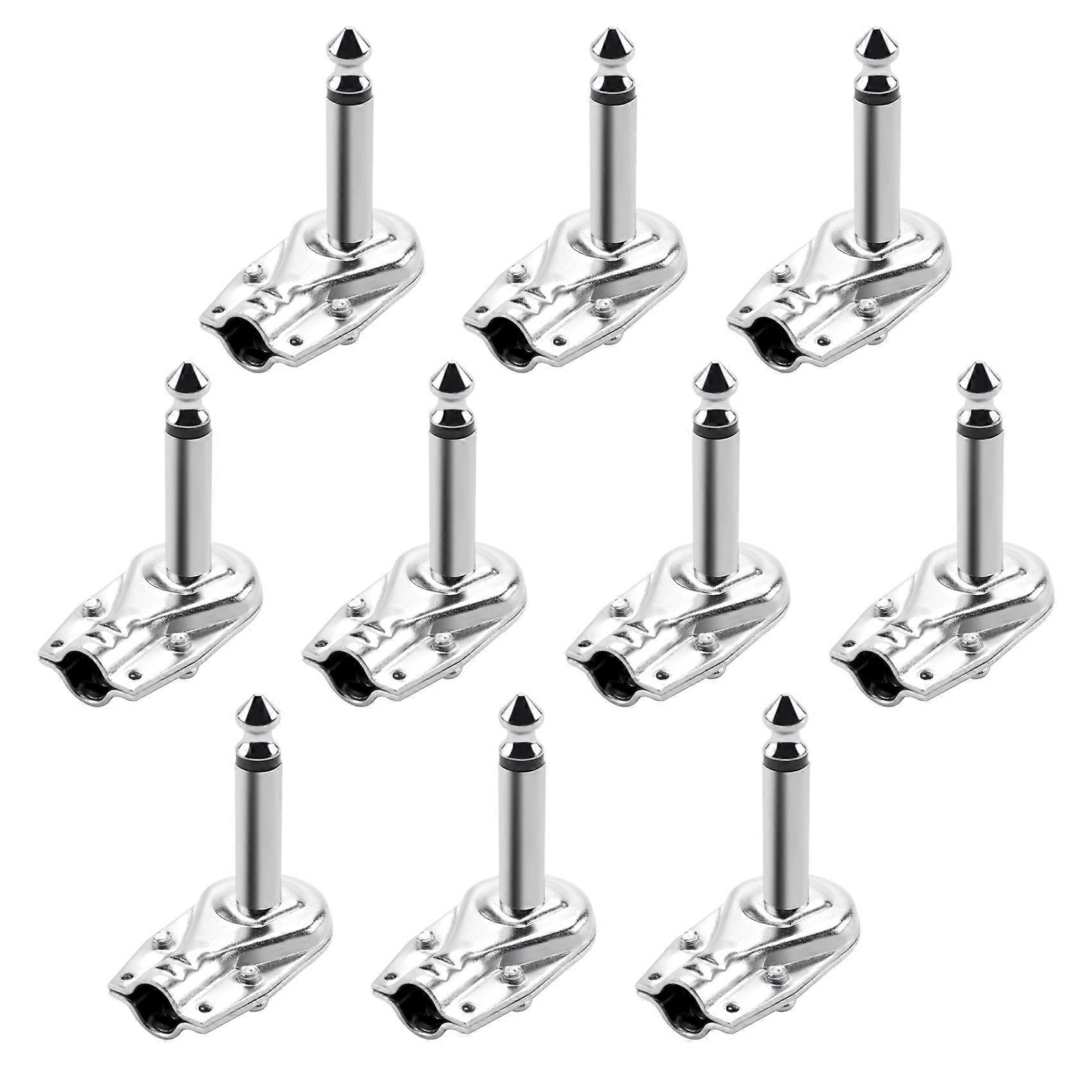 10Pcs 90Degree Right Angle 6.35 mm Mono 2 Pole Jack Plug 6.35mm Guitar Phono Pancake 1/4 Inch Connector,Silver