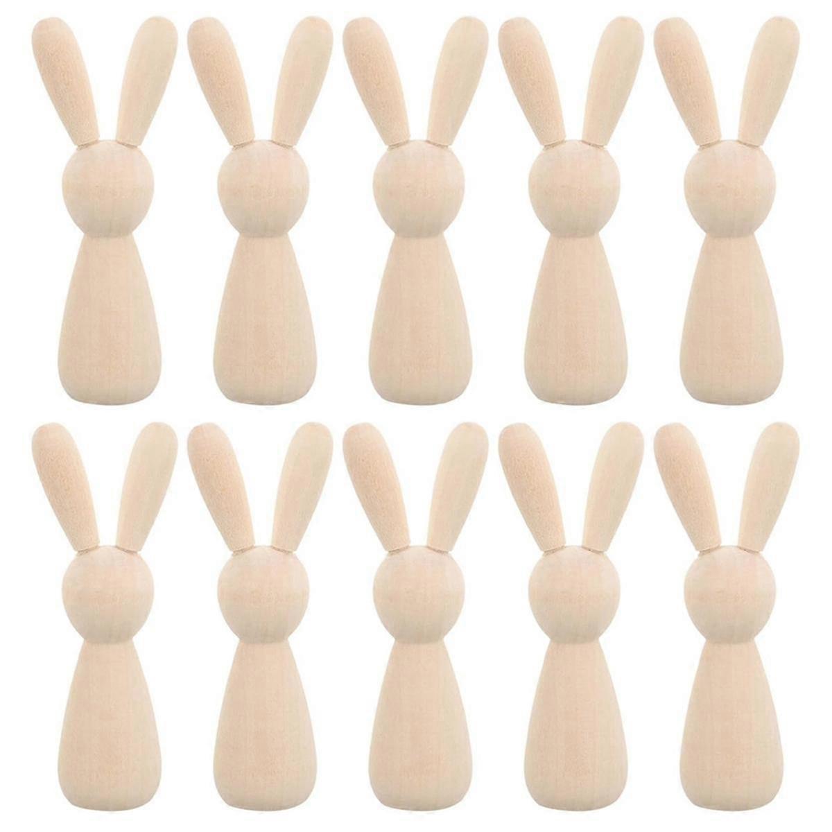 10Pcs Unfinished Wooden Rabbit Doll Figure Unpainted Peg Dolls DIY Blank Wood Bunny Puppet Craft Art Easter Decoration