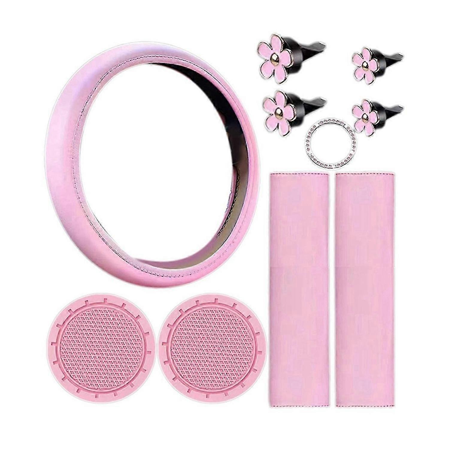 10 Pcs Steering Wheel Cover For Women Cute Accessories Set Pink