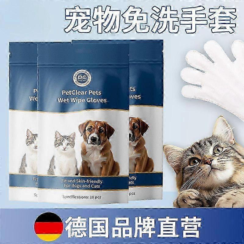10 pcs No-Rinse Pet Glove Wipes 5-Finger Design, Hypoallergenic Grooming Mitts for Dogs & Cats with Hazel Extract And Hyaluronic Acid