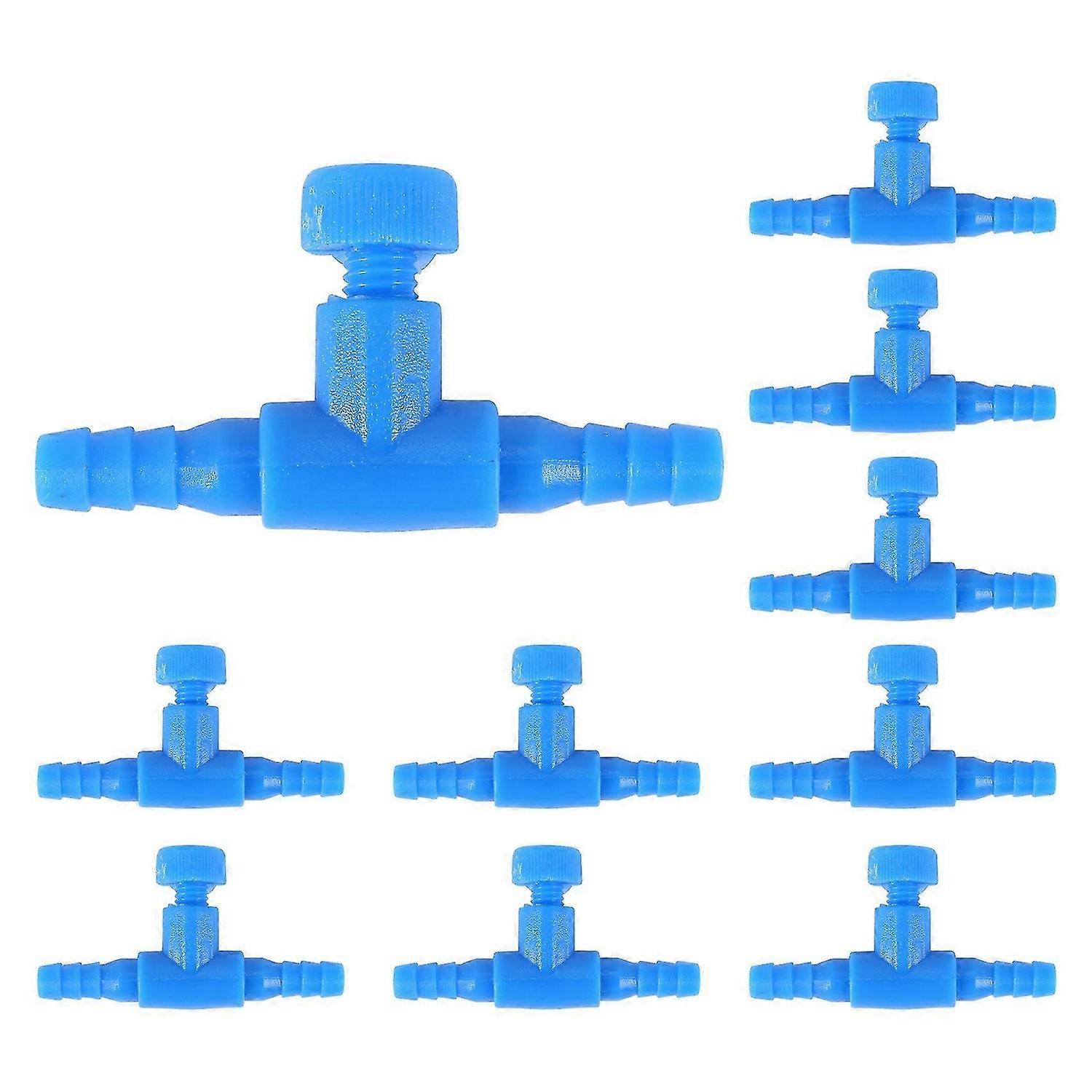 10 Pieces Plastic Aquarium Fish Tank 2 Way Air Pump Control Valves, Blue