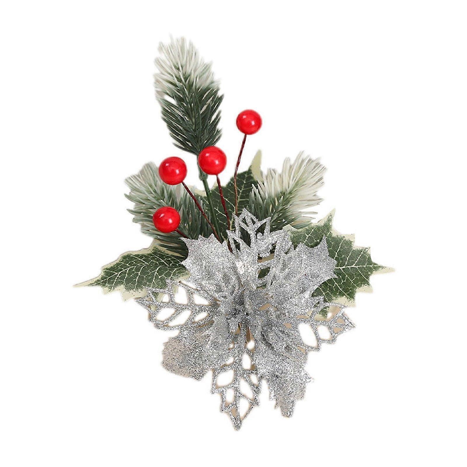 10Pcs Artificial Berry Decorations with Clips, Glitter Christmas Flowers for Tree, Wreath, Garland, Home, Party - Compatible with Christmas Decor