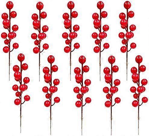 10pcs Christmas Holly Berries Artificial Berries Red Berry for Christmas Wreath Making Supplies,Picks Winter Berry Branches Red Berries on Stems for X