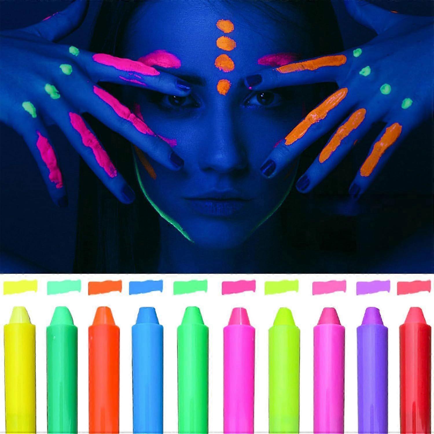 10 Pcs Glow in The Dark Body Face Paint, Neon Glow in The Black Light UV Fluorescent Crayons Paint Sticks for Kids Adults Halloween Blacklight Birthda