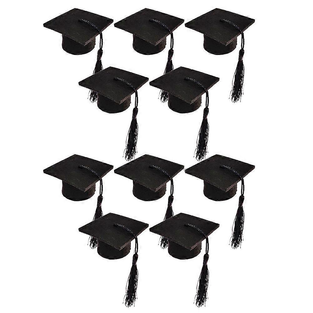10 Pcs Black Outfit Mini Graduation Caps Tassels Beer Bottle Stopper Cap Wine Bottle Cap Champagne Stopper