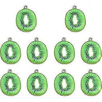 10 Pcs Enamel Fruit Slice Charms Food Pendants Jewelry Making Charms for DIY NecklaceKiwi