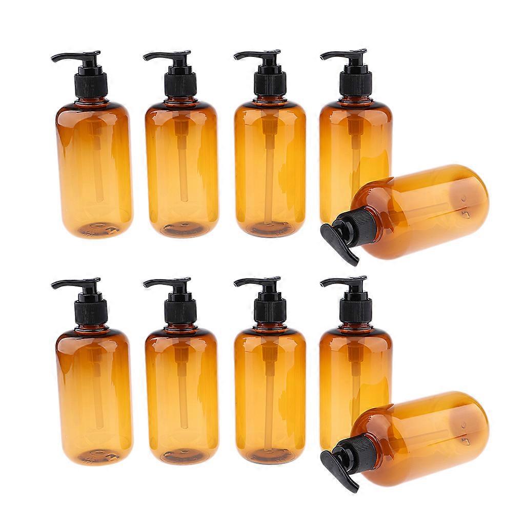 10 Pcs 300ml Brown Empty Pump Shampoo Lotions Container Refillable Bottle