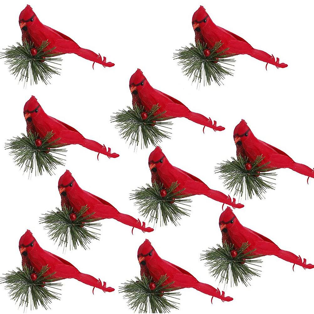 10 Pcs Artificial Bird Simulation Foam Bird with Pine Picks Red Artificial Birds Decor with Clip Christmas Wedding Party Decor