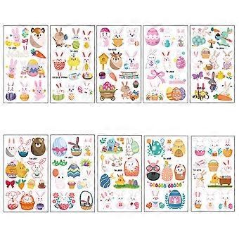 10 Sheets Easter Tattoo Stickers Easter Bunny Chicks Eggs Temporary Tattoos Party Favors Fake Face Arm Sticker
