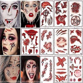 10 Sheets Halloween Tattoo Stickers, Realistic Terror Fake Bloody Wound Stitch Face Chest Scar Scab Waterproof for Halloween Masquerade Prank Makeup P