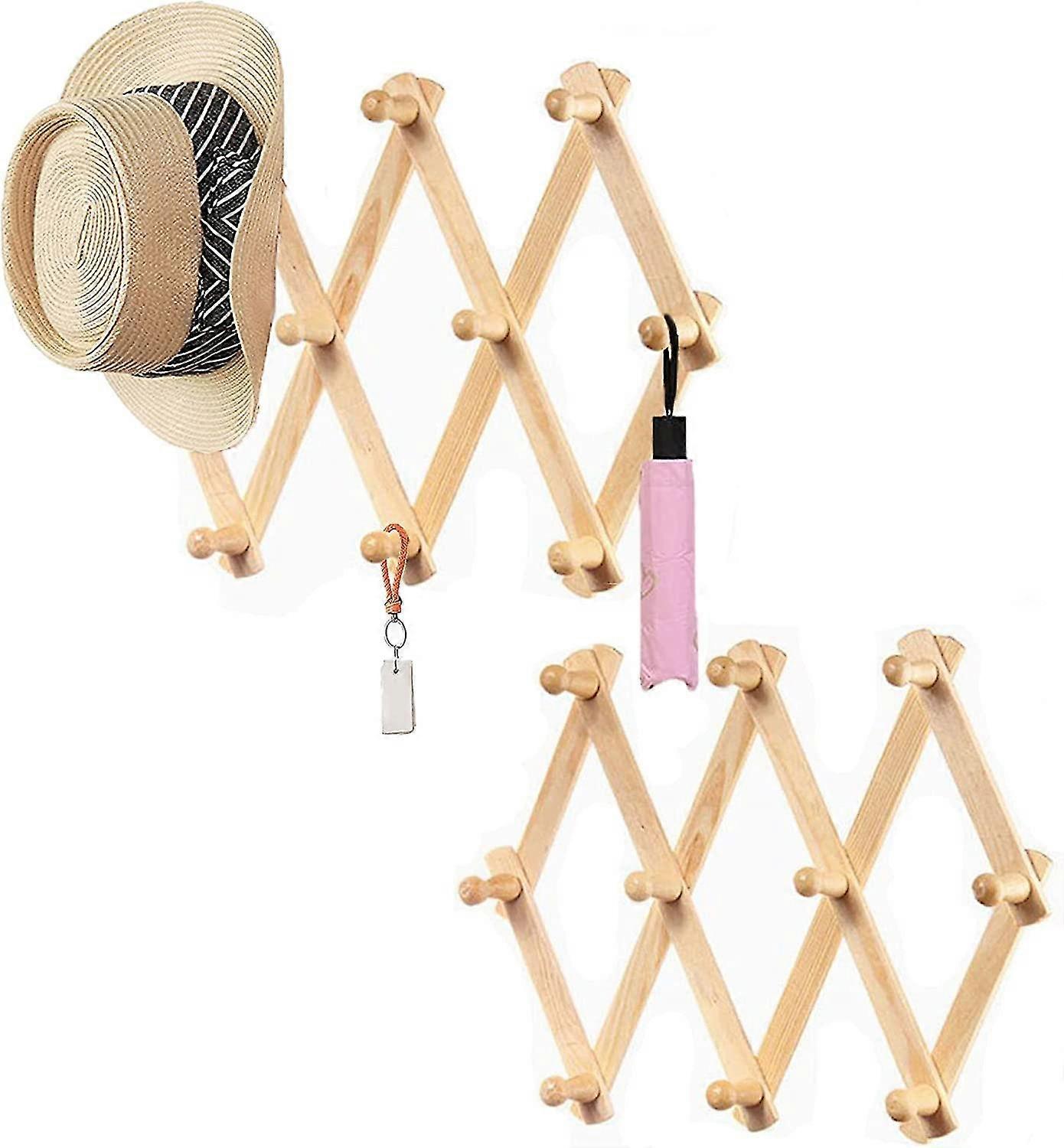 Expandable Wood Wall Rack Folding Hanger 10 Pegs Wooden Hook Wall Mounted Expanding Storage Rack, Wall-mounted Coat Rack Retractable Drying Rack