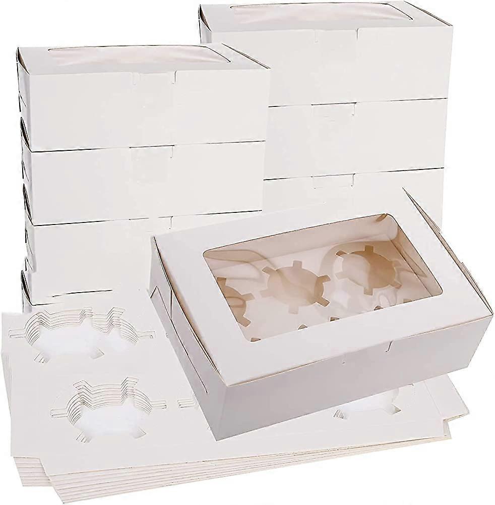 Pack of 10 Cake Boxes, Cupcake Boxes 6- Holes with Window and Inserts