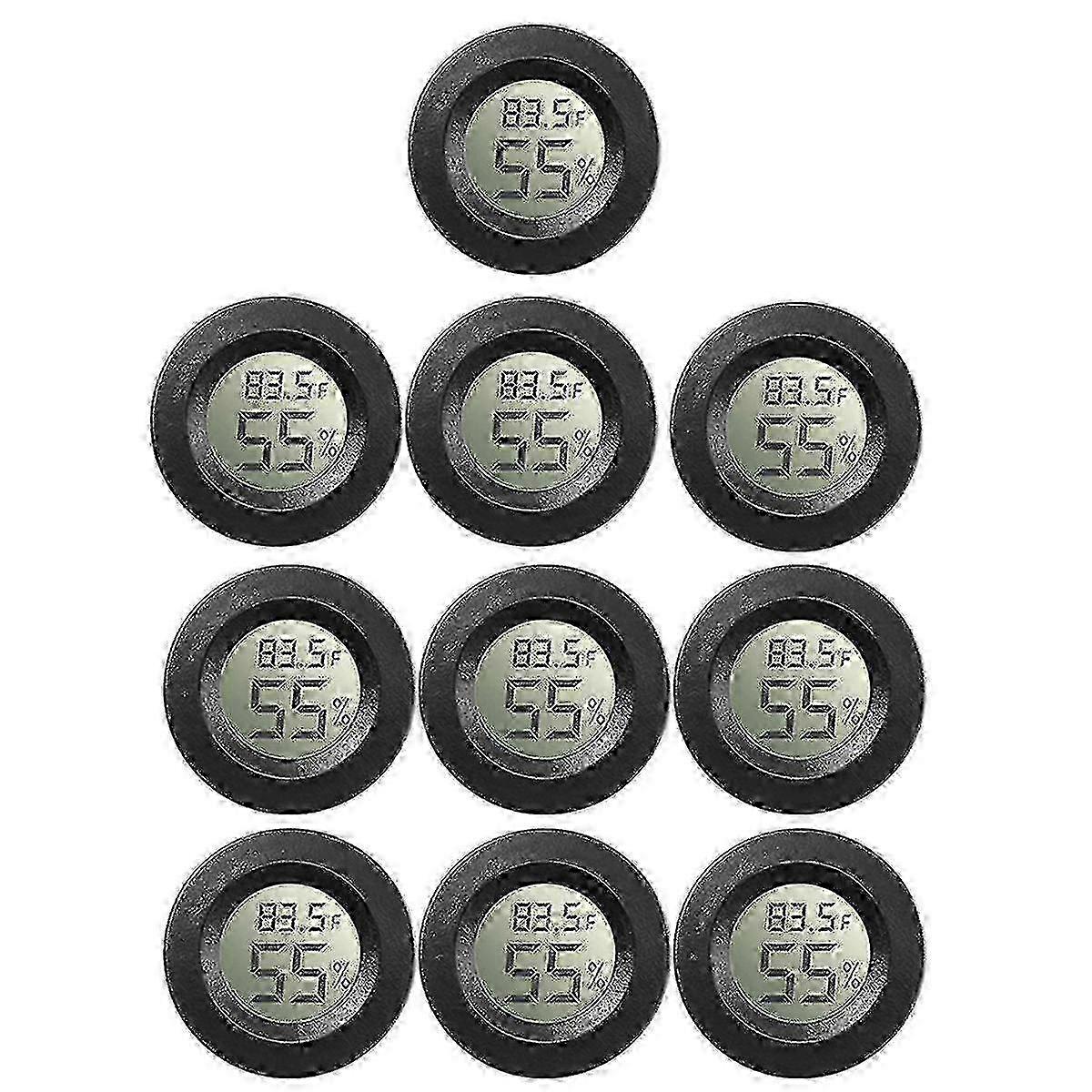 10pack Mini Hygrometer Thermometer Meter Digital Lcd Monitor For Greenhouse Babyroom Reptile Incuba WalkbeeMini round digital humidity thermometer allows you to easily know the environment temperature and humidity around you Fahrenheit (F) or Celsius (C) conversion, this round thermometer displays temperature in Fahrenheit or Celsius (pressing the conversion button of /) Measurable humidity range: 10%-99%, humidity measurement accuracy: 5%-10% (room temperature 25). Reliability, measured every 10 seconds, provides the latest and accurate measurement results. Household humidity and temperature monitor