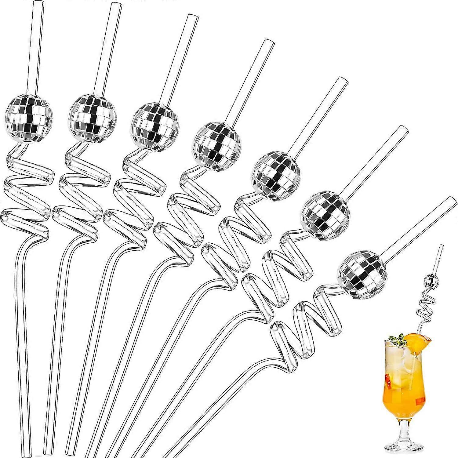 10 Pcs Mirror Disco Ball Straws 70s Disco Decorative Straws Mini Disco Straw Decor For Disco Party Retro Dance Holiday Wedding Birthday Supplies