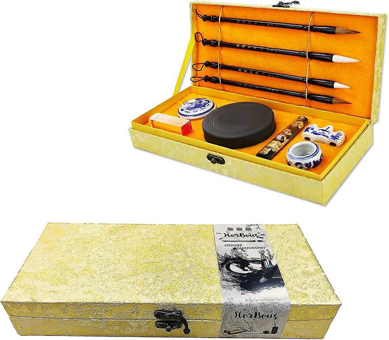 10 Pcs Chinese Calligraphy Set Inkstone + Writing And Painting Brush + Ink Block + Seal + Inkpad + Pen Rack + Water Bowl (basic)