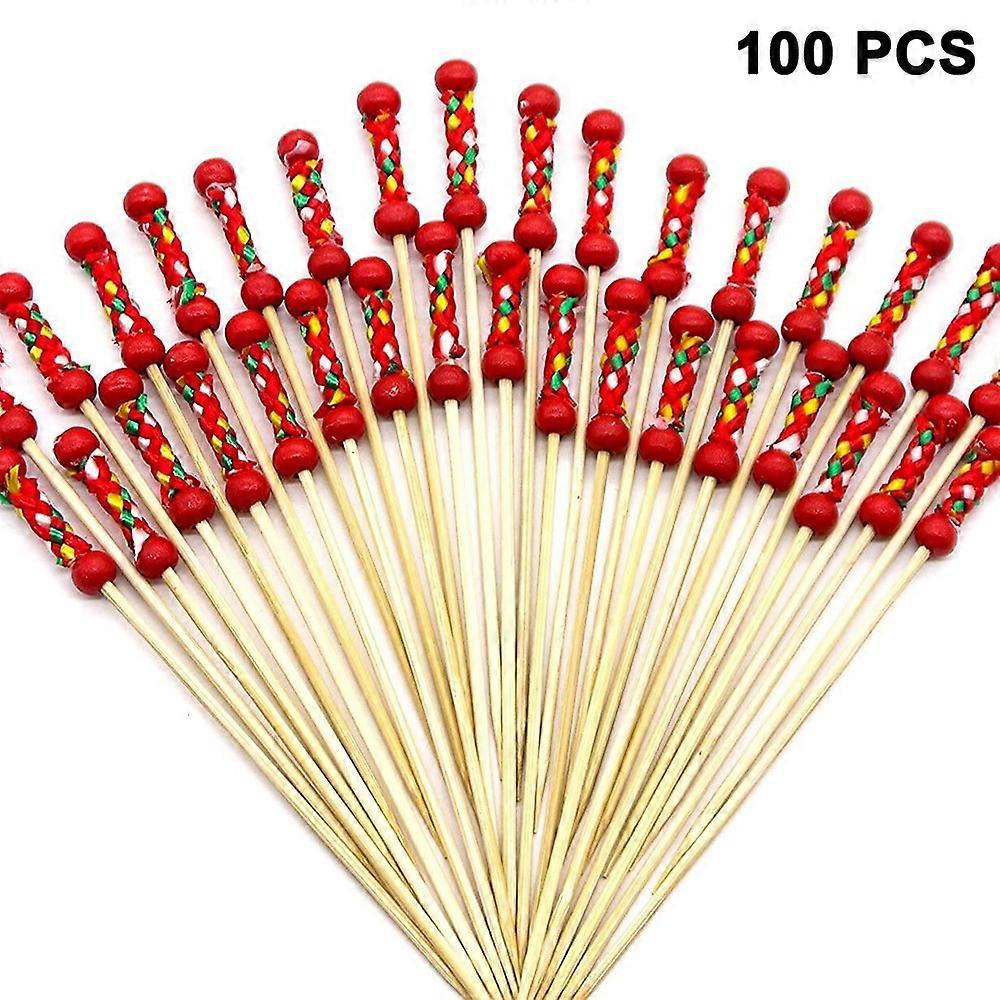 100pcs Cocktail Toothpicks Cocktail Picks Handmade Natural Bamboo Cocktail Sticks Eco-Friendly Appetizer Skewers for Cocktail Appetizers Fruits Desser