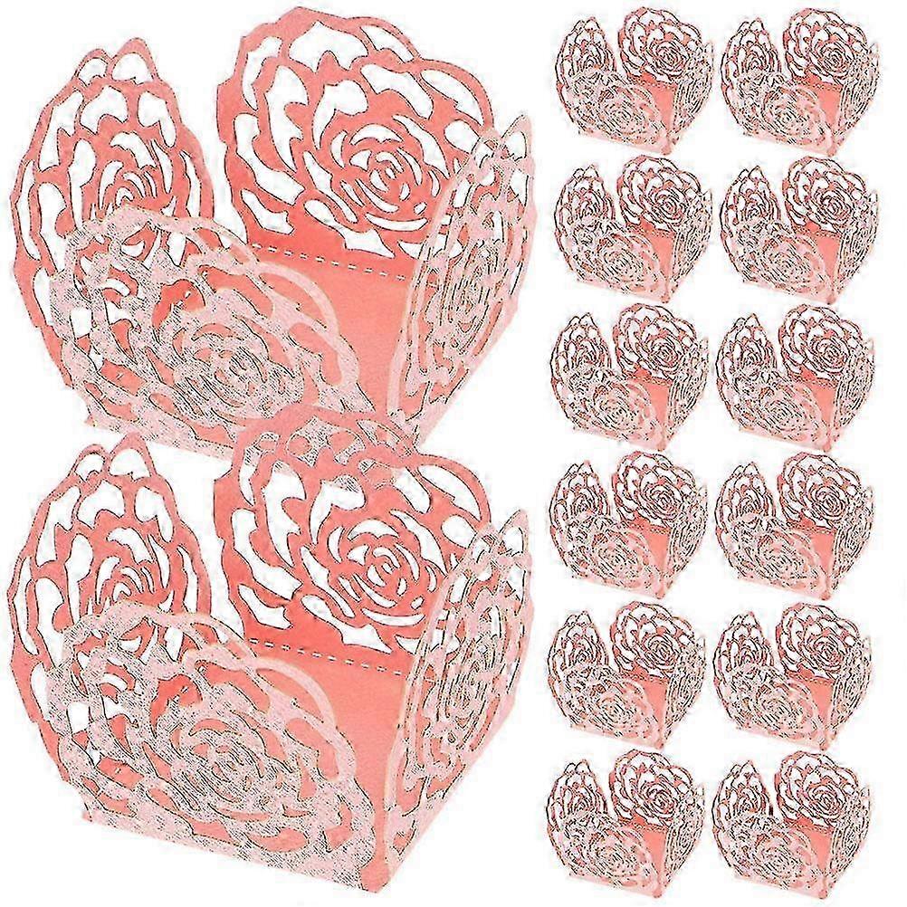 100pcs Pink Chocolate Wrappers with Hollow Rose Pattern for Party Candy, Wedding Favors & Birthday Treats - 3.5x3.5x3.3cm