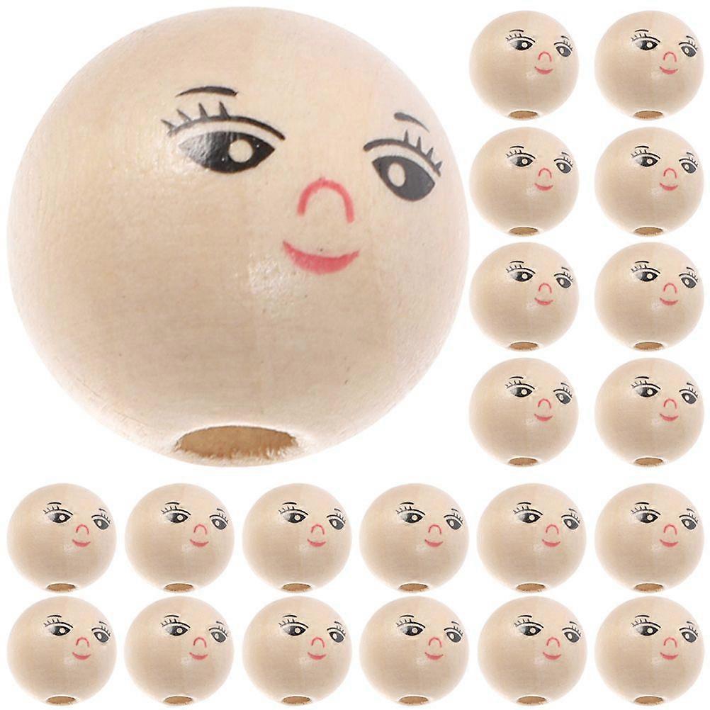 100pcs Natural Wood Beads Smile Face Wood Loose Beads Craft Garland Wood Beads