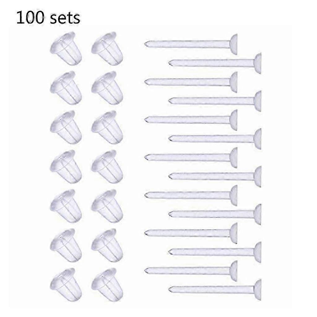 100 Kits Clear Plastic Earrings Includes Ear Pin & Ear Safety Backs Earring Findings Earring Retainers Invisible Earring
