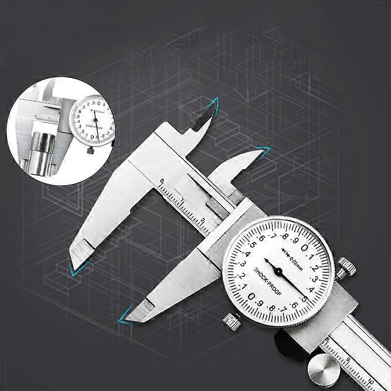 100% New Upgraded High Precision Stainless Steel Dial Caliper 0-150mm 6'' w/ Shockproof Table Vernier - Accurate Measurement Tool for Stone, Bead, Gem