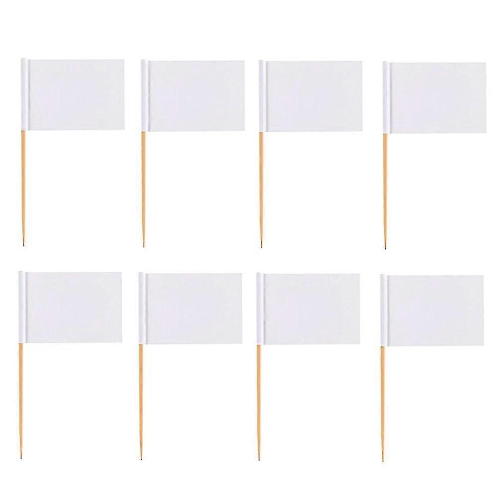 100 Pcs Wooden Flag Toothpicks White DIY Cupcake Toppers Toothpick for Party Food Decoration