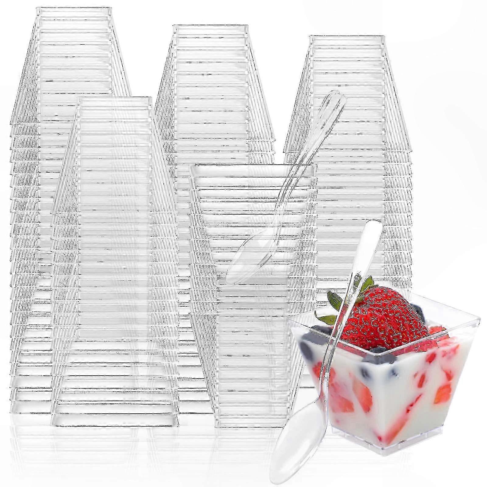 100 Pack 2oz Mini Plastic Cups for Desserts, Parties, Pudding, Fruit, Ice Cream, Disposable Shooter Cups