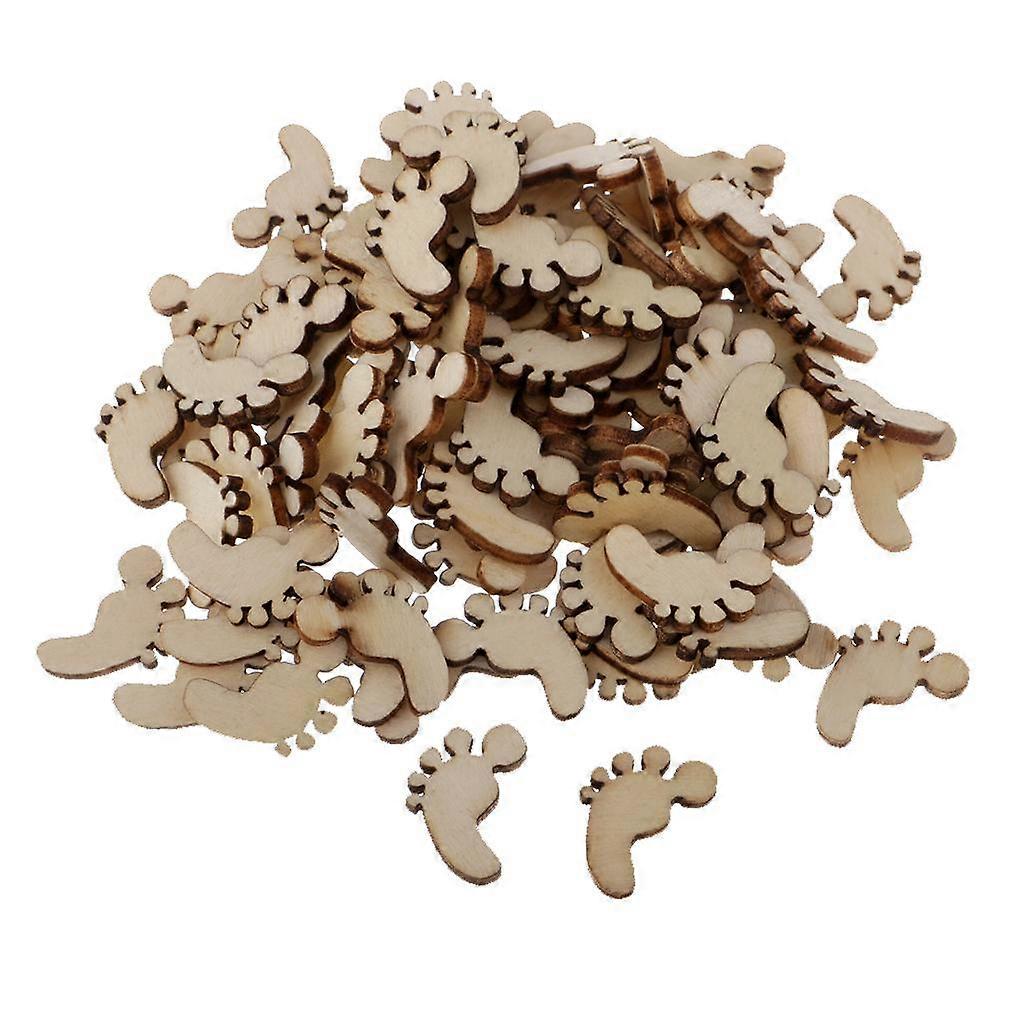 100 Pieces Wooden Wood Footprint Cutout Wedding Craft Embellishments Decorations