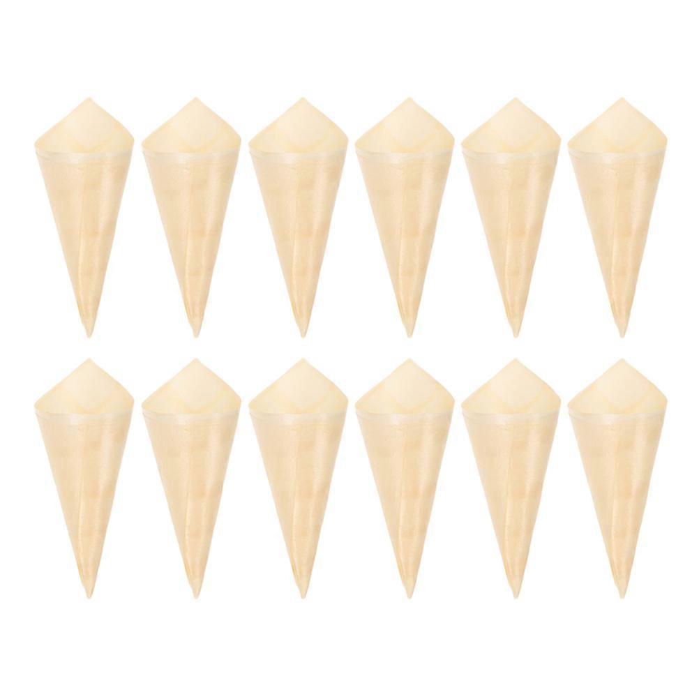 100 Pcs Wooden Tasting Cones Disposable Wooden Cones Ice Cream Cones Holders