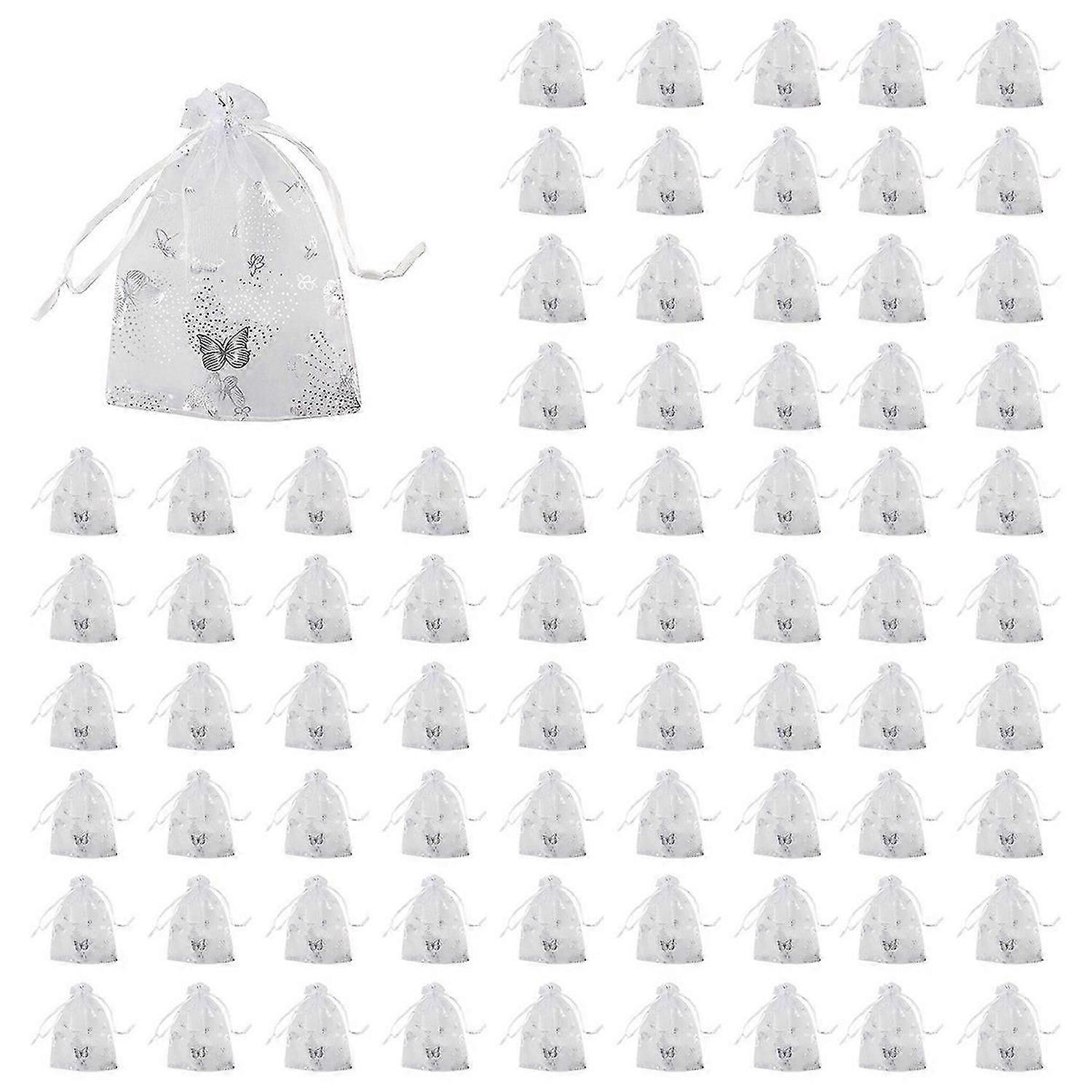 100Pcs 9X12cm Butterfly Organza Jewelry Gift Pouch Favor Bags White