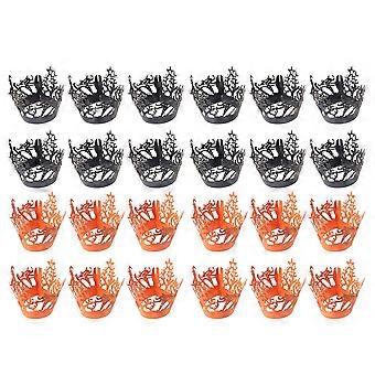 100 Pcs Cake Wrappers Hollow Fashion Pattern Design Cupcake Wrappers Decor Wedding Birthday Party Baby Shower Wrap (Black and Orange)