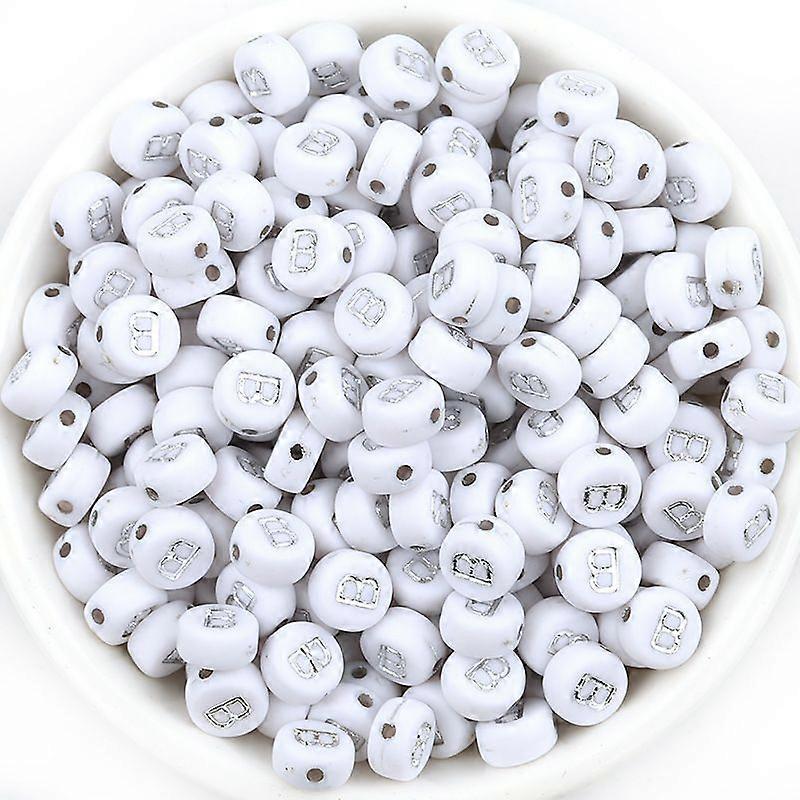 100pcs Mini Alphabet Beads: Acrylic White Letter B Beads for Bracelets - Flat Round ABC Charm for DIY Jewelry Making Friendship Bracelet & Keychain