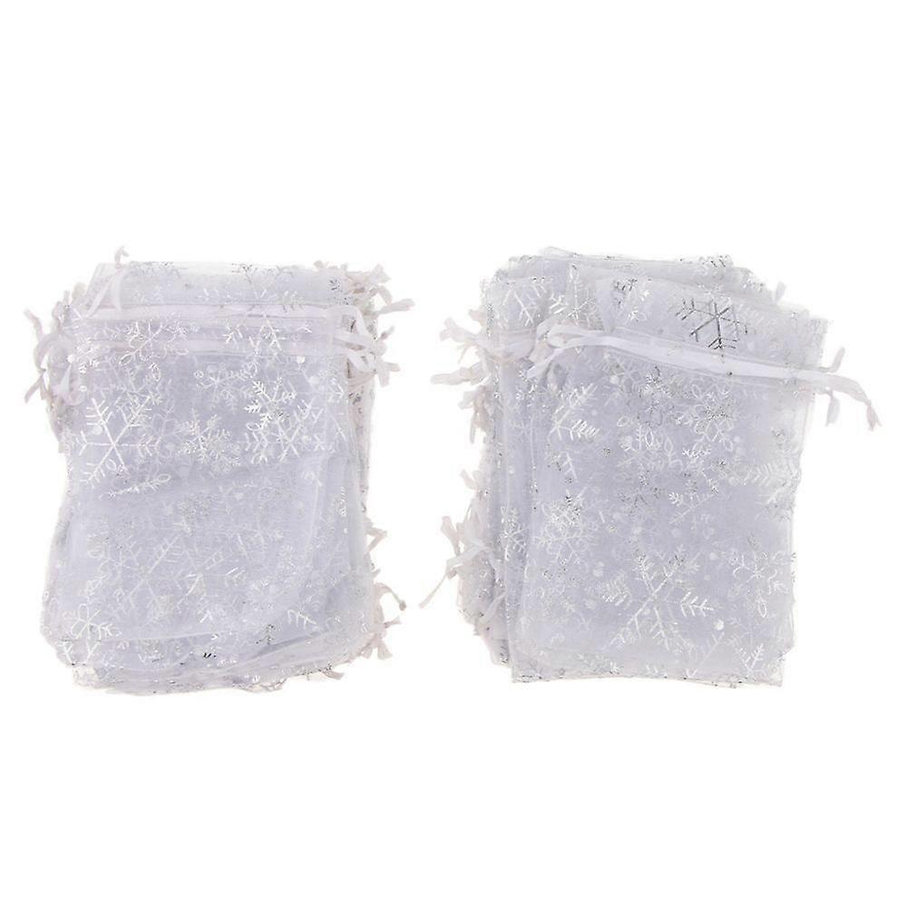 100 Pcs Tulle Snowflake Gift Pouch Candy Bag Christmas Gift Favor 10 x 15cm