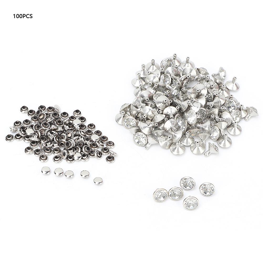 100pcs 10mm Metal Rhinestones Rivets Studs Decorative Spikes (Silver Edge, White Crystal)