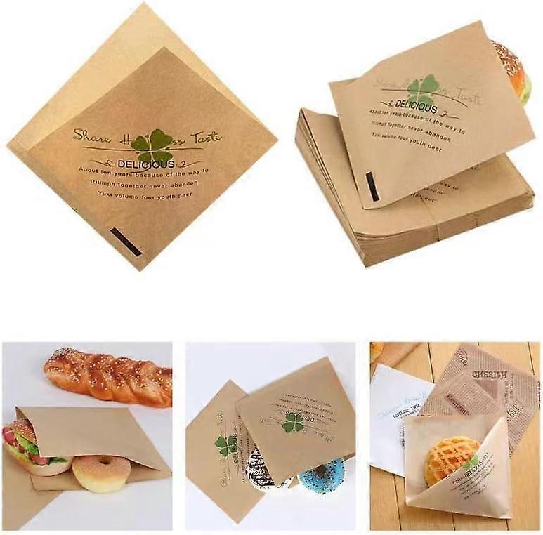 100 triangle paper bags for food packaging, paper bags for hamburger packaging, greaseproof kraft paper sandwich bags, greaseproof kraft paper bags