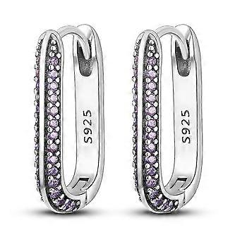 100% 925 Silver Sparkling Pave U Shape Love Heart Fashion Earring Jewelry Gift For Women Girl Party Engagement Hoop Earrings
