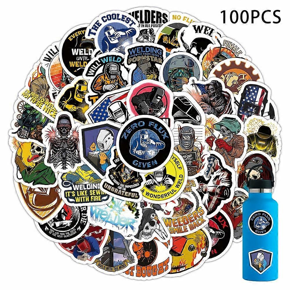 100pcs Welder Stickers, Water Bottle Laptop Colorful Hat Magic Wear Bicycle Notebook Skateboard Computer Sticker Waterproof Cute Decals Pack