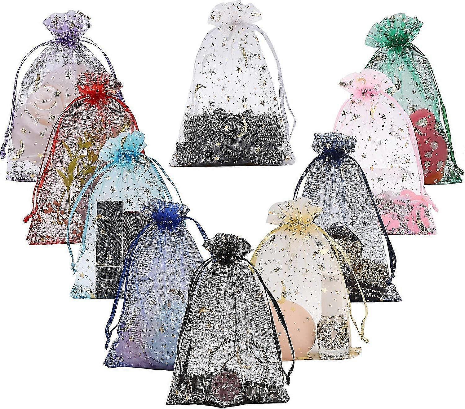 100pcs Sheer Organza Bags, Mixed Color Wedding Favor Bags With Drawstring