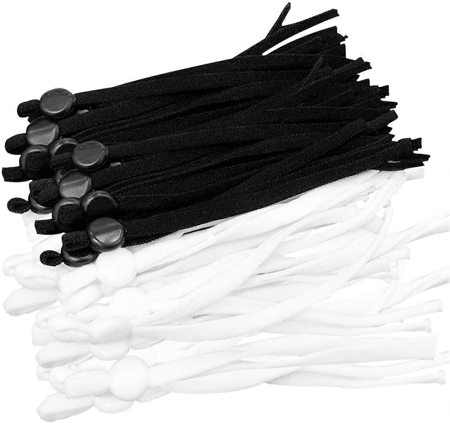 100Pcs Elastic Band Cord with Adjustable Buckle, Anti-Slip Ear Straps Elastic Thread Rope, for DIY Craft Supplies (50 Black+50 White)